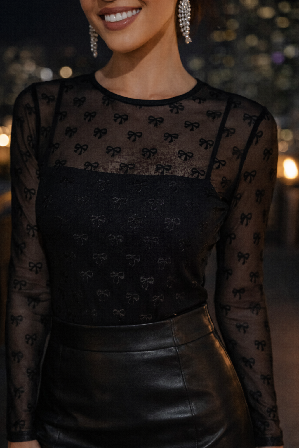Pretty In Bows Mesh Long Sleeve Top – Sexy & Chic with a Touch of Grace